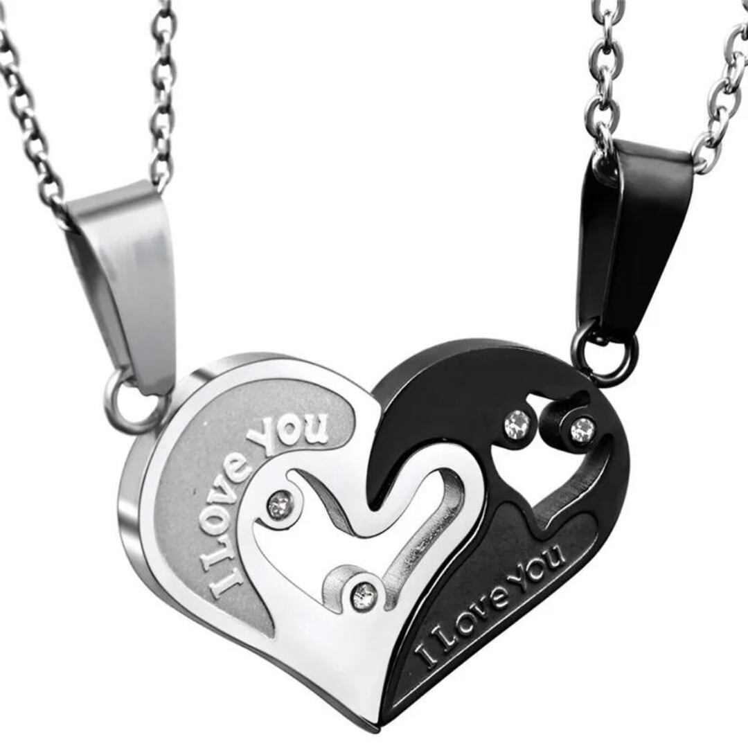 Modyle ペア ハート シルバー ブラック ステンレス鋼 ウェディング ジュエリー ネックレス【0214】