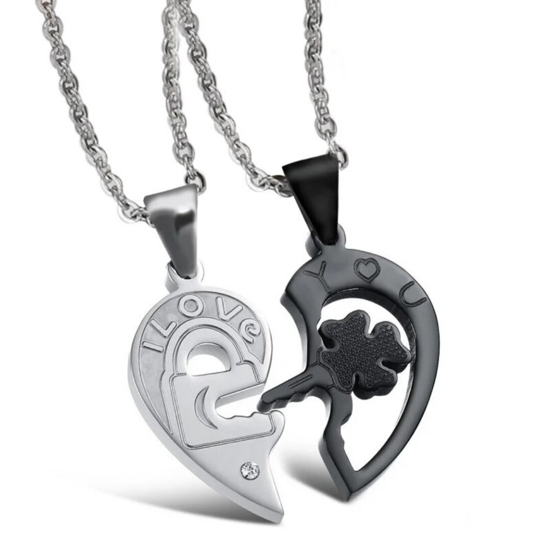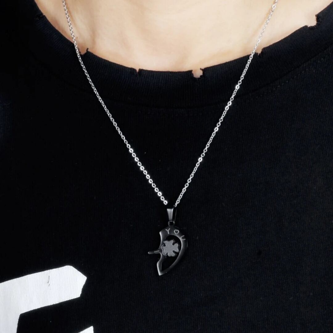 ステンレス鋼 カップル ペア ハート ペンダント チェーン シルバー ブラック ネックレス【0212】