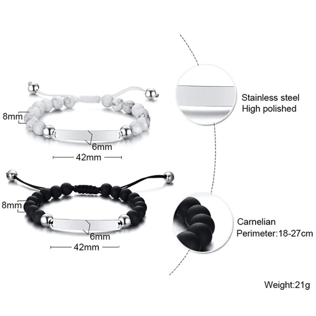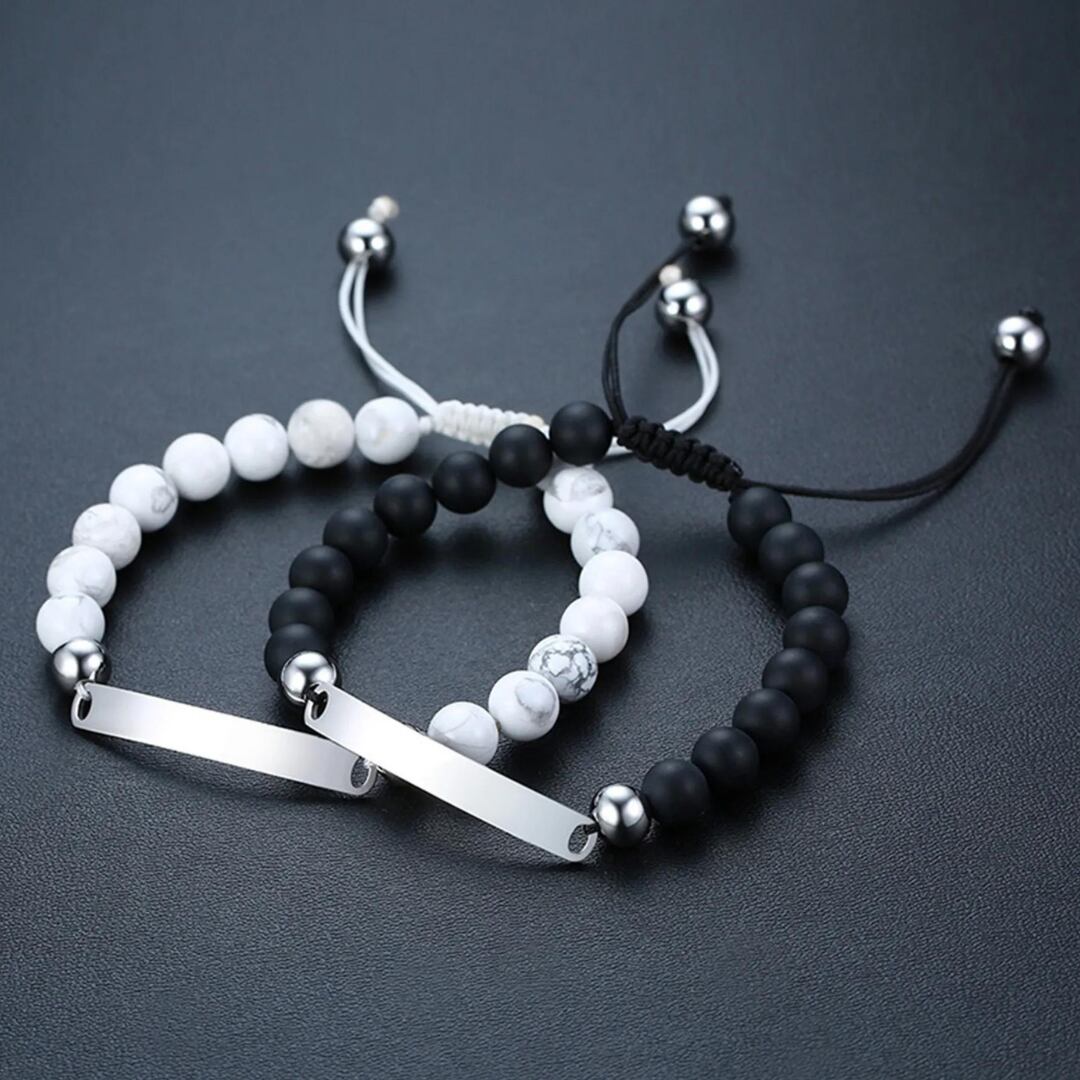 天然石風 カップル ペア 調節可能 ステンレススチール シルバー ブレスレット【0220】